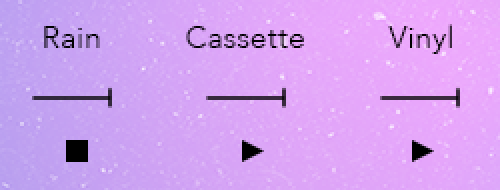 Rain, Cassette and Vinyl noise volume controls and play/stop functions.